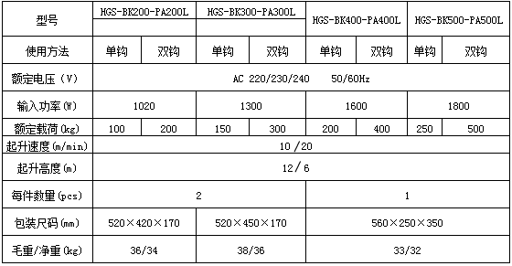 PA200L 快速微型電動葫蘆特點: