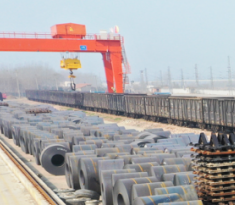 礦山中運輸的鋼材量大,重量重達幾萬甚至十幾萬噸,為了快速完成鋼材的運輸任務,某礦山公司承包下當地的火車站貨場,并搭建一座大型的龍門吊,在龍門吊上安裝一臺大噸位的鋼絲繩電動葫蘆,將鋼材放置到電動葫蘆的吊鉤上,再啟動電動葫蘆的上升按鈕,使葫蘆上升到一定高度之后,使其向鐵路貨車貨箱的方向行走,滑動到指定位置后,再將鋼材下放到貨車車廂中。